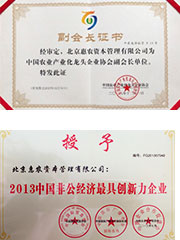 北京基金業(yè)協(xié)會(huì)—副會(huì)長(zhǎng)單位、特殊資產(chǎn)投資專業(yè)委員會(huì)副會(huì)長(zhǎng)單位、農(nóng)業(yè)投資專業(yè)委員會(huì)會(huì)長(zhǎng)單位、新三板專業(yè)委員會(huì)副會(huì)長(zhǎng)單位